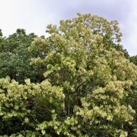 Соцветие – многоцветковая поникающая кисть длиной 10-25 см, содержит по 5-15 душистых цветков. Плоды в виде плоских коричневых бобов появляются к концу сентября, нередко висят на деревьях в продолжение всей зимы. Цветение происходит в мае-июне.