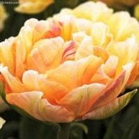 И в этом нет ни капельки преувеличения! Тюльпан Шарминг Бьюти не зря получил такое название. Перед его шармом, красотой и яркостью красок просто невозможно устоять! На упругих полуметровых цветоносах ближе к концу мая начинают распускаться густомахровые бутоны, размер которых весьма впечатляет (до 15 см в диаметре!). Крупные лепестки этого стройного красавца окрашены в нежнейший кремово-персиковый окрас. Хотя точно описать цветовую гамму Шарминг Бьюти очень сложно. Если присмотреться повнимательнее, здесь есть нотки и розового, и алого, и желтого, оранжевого, и даже зеленоватого оттенка.
