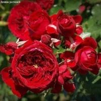 Эта роза имеет восхитительные ярко-красные густомахровые цветки. Прекрасные цветки могут располагаться на цветоносах по одному, а могут быть собраны в кисти от 3 и более штук.