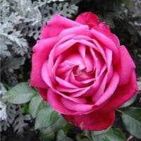 Цветки диаметром 9-12 см, густомахровые, фиолетово-пурпурного тона, с настоящим, подлинным, очень интенсивным ароматом чайно-гибридной розы. Кусты очень крепкие, здоровые, выносливые, образуют много побегов, но при этом всегда остаются компактными, высотой 60-80 см. Листья глянцевые, устойчивые к заболеваниям. Очень красиво смотрится в комбинации с белыми и синими многолетниками. Хороший контейнерный сорт.