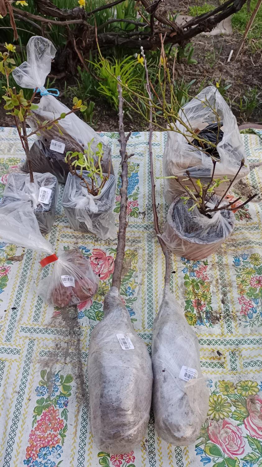 Заказала 2 яблони, 2 жимолости, 1 грушу и 1 сливу. Упаковано отлично. Саженцы 1.5 метра +- в подарок положили луковицы растений, посажу осенью. Спасибо за подарок) Прошёл месяц: саженцы яблони цветут, груша зеленеет, жимолость в листочках, слива пока спит.